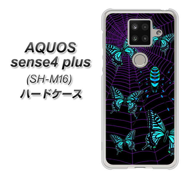 楽天モバイル アクオスセンス4 プラス SH-M16 高画質仕上げ 背面印刷 ハードケース【AG830 蜘蛛の巣に舞う蝶(青)】