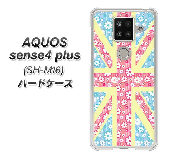 楽天モバイル アクオスセンス4 プラス SH-M16 高画質仕上げ 背面印刷 ハードケース【EK895 ユニオンジャックパステルフラワー】