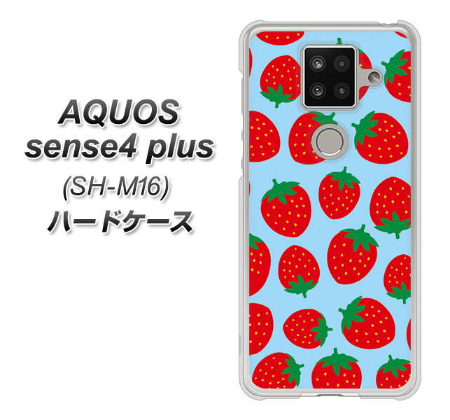 楽天モバイル アクオスセンス4 プラス SH-M16 高画質仕上げ 背面印刷 ハードケース【SC814 小さいイチゴ模様 レッドとブルー】