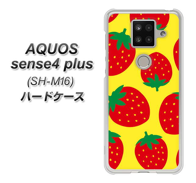 楽天モバイル アクオスセンス4 プラス SH-M16 高画質仕上げ 背面印刷 ハードケース【SC819 大きいイチゴ模様レッドとイエロー】