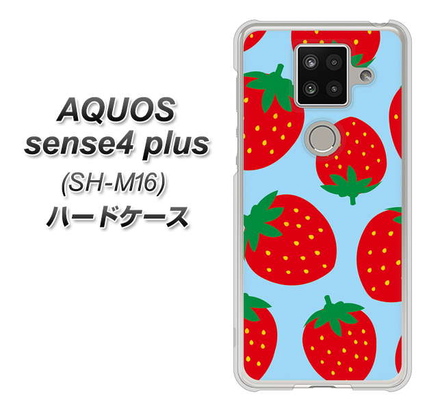 楽天モバイル アクオスセンス4 プラス SH-M16 高画質仕上げ 背面印刷 ハードケース【SC821 大きいイチゴ模様レッドとブルー】