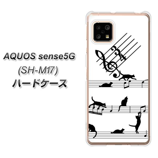SIMフリー アクオスセンス5G SH-M17 高画質仕上げ 背面印刷 ハードケース【1112 音符とじゃれるネコ2】