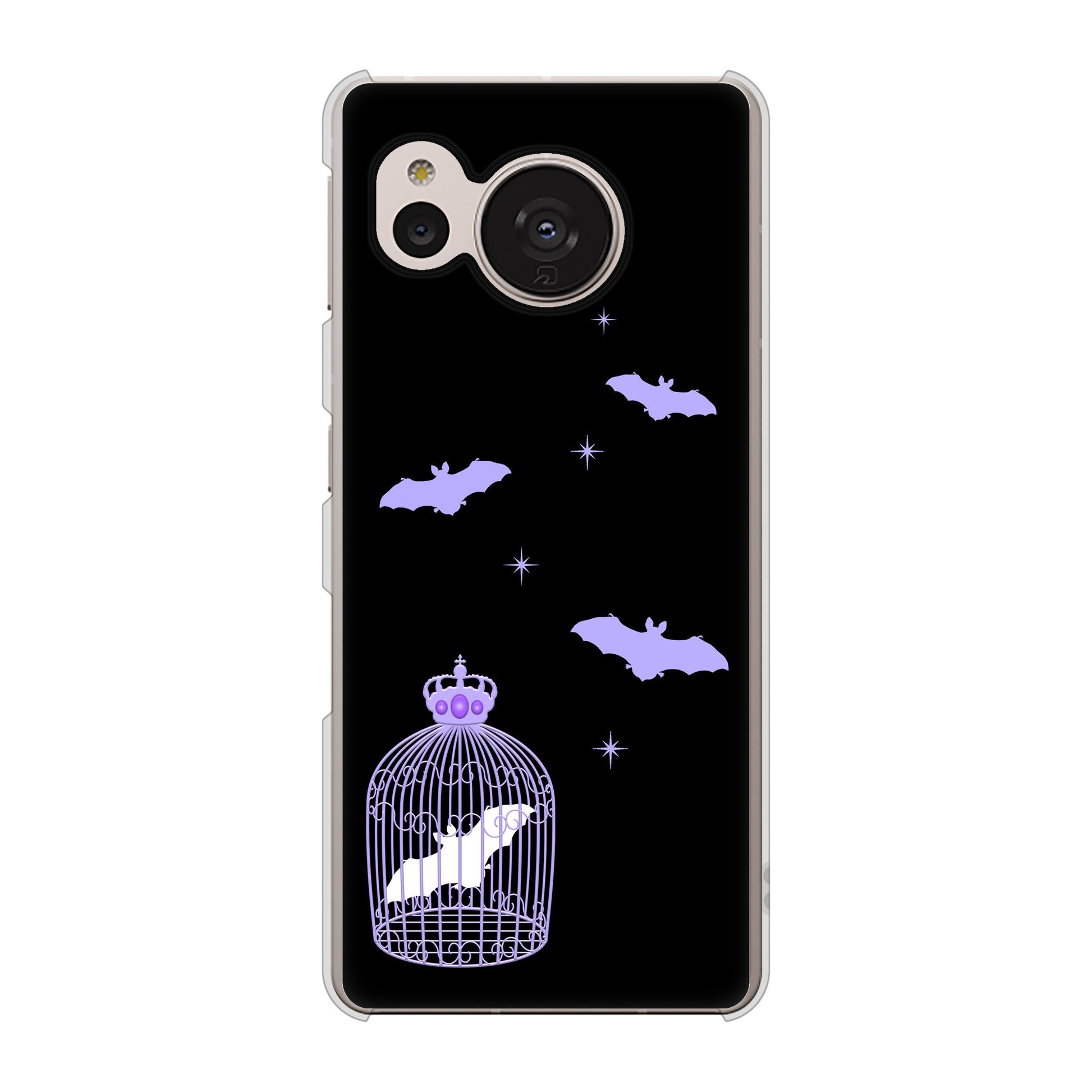 AQUOS sense7 SH-M24 楽天モバイル 高画質仕上げ 背面印刷 ハードケース【AG810 こうもりの王冠鳥かご(黒×紫)】