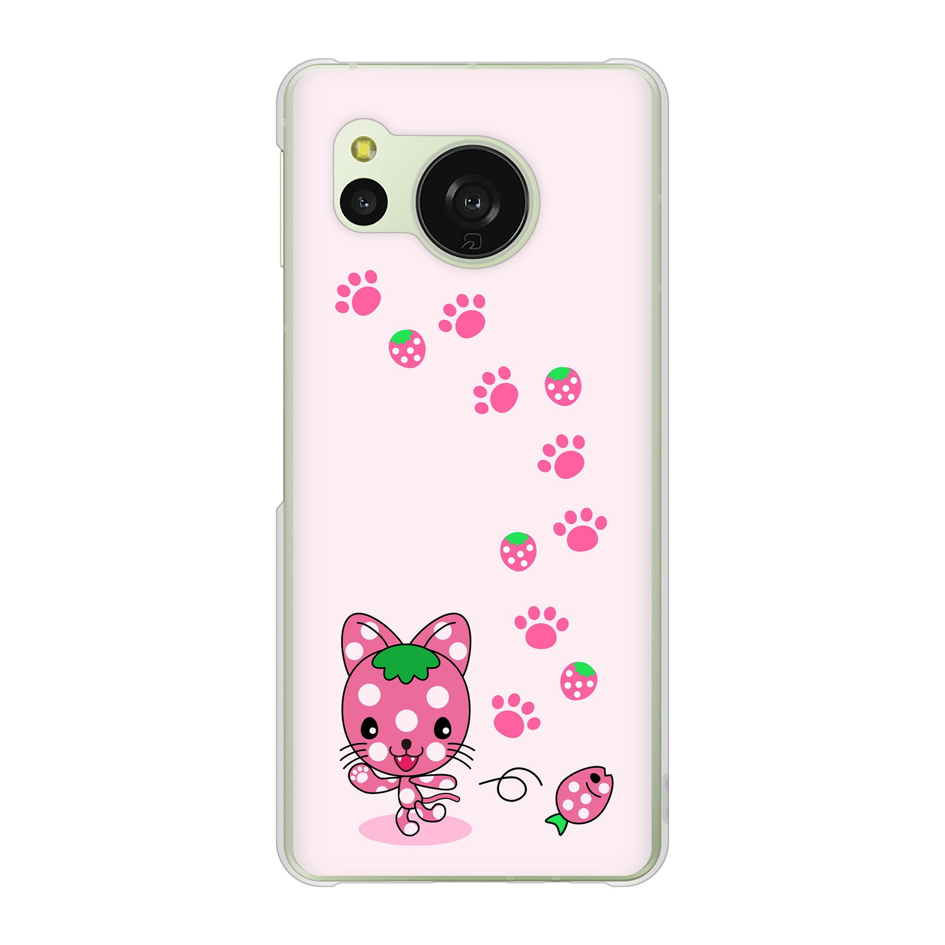 AQUOS sense8 SH-M26 高画質仕上げ 背面印刷 ハードケースむかいあぐる イチゴ猫のにゃんベリー