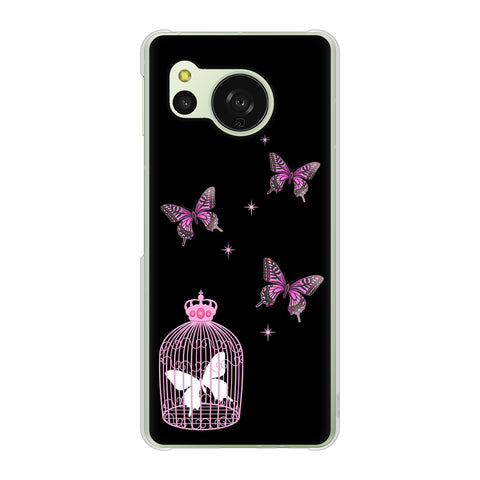 AQUOS sense8 SH-M26 高画質仕上げ 背面印刷 ハードケースむかいあぐる 蝶の王冠鳥かご