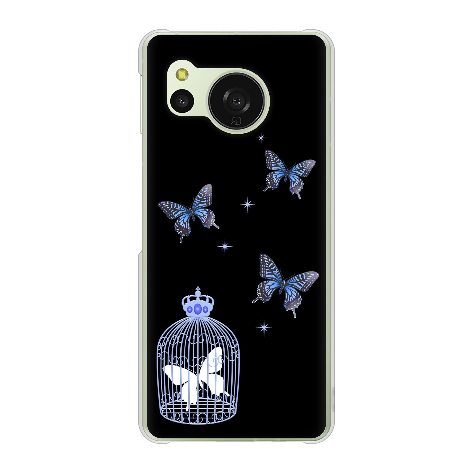 • AQUOS sense8 SH-M26 高画質仕上げ 背面印刷 ハードケースむかいあぐる 蝶の王冠鳥かご