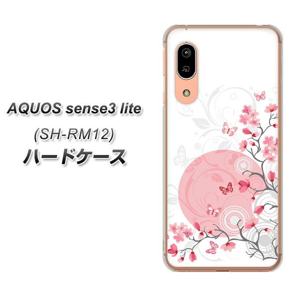 アクオス センス3 ライト SH-RM12 高画質仕上げ 背面印刷 ハードケース【030 花と蝶(うす桃色)】