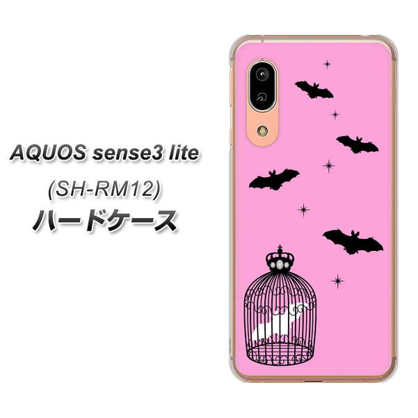 アクオス センス3 ライト SH-RM12 高画質仕上げ 背面印刷 ハードケース【AG808 こうもりの王冠鳥かご(ピンク×黒)】