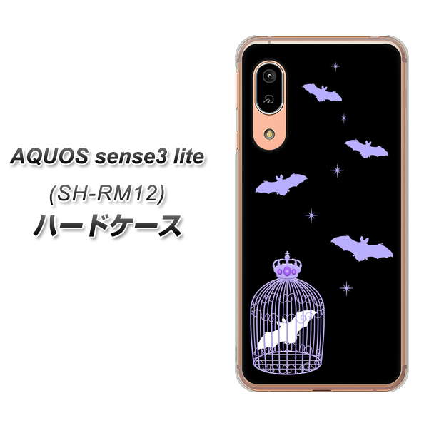 アクオス センス3 ライト SH-RM12 高画質仕上げ 背面印刷 ハードケース【AG810 こうもりの王冠鳥かご(黒×紫)】