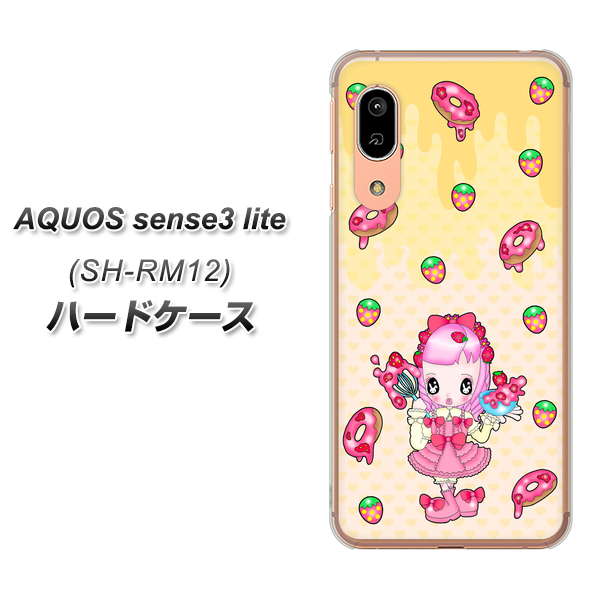 アクオス センス3 ライト SH-RM12 高画質仕上げ 背面印刷 ハードケース【AG815 ストロベリードーナツ(水玉黄)】