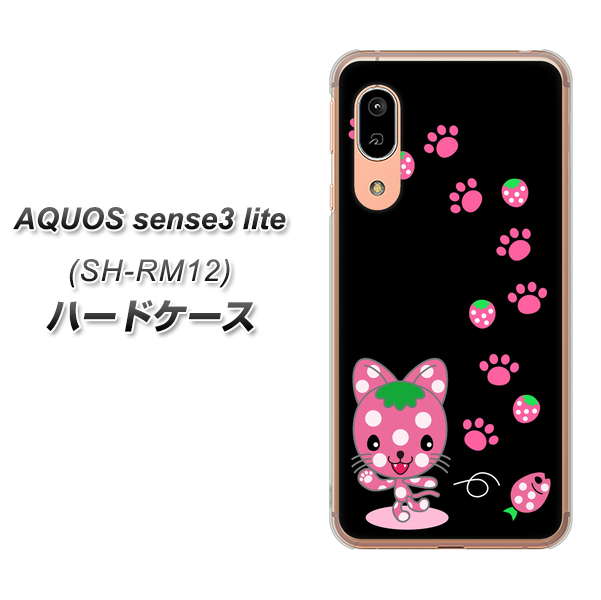アクオス センス3 ライト SH-RM12 高画質仕上げ 背面印刷 ハードケース【AG820 イチゴ猫のにゃんベリー(黒)】