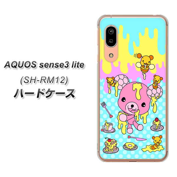 アクオス センス3 ライト SH-RM12 高画質仕上げ 背面印刷 ハードケース【AG821 ハニベア(水玉水色)】