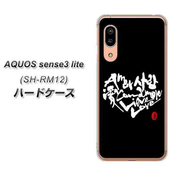 アクオス センス3 ライト SH-RM12 高画質仕上げ 背面印刷 ハードケース【OE802 世界の言葉で「愛(ブラック)」のデザイン筆文字(書道家作品)】