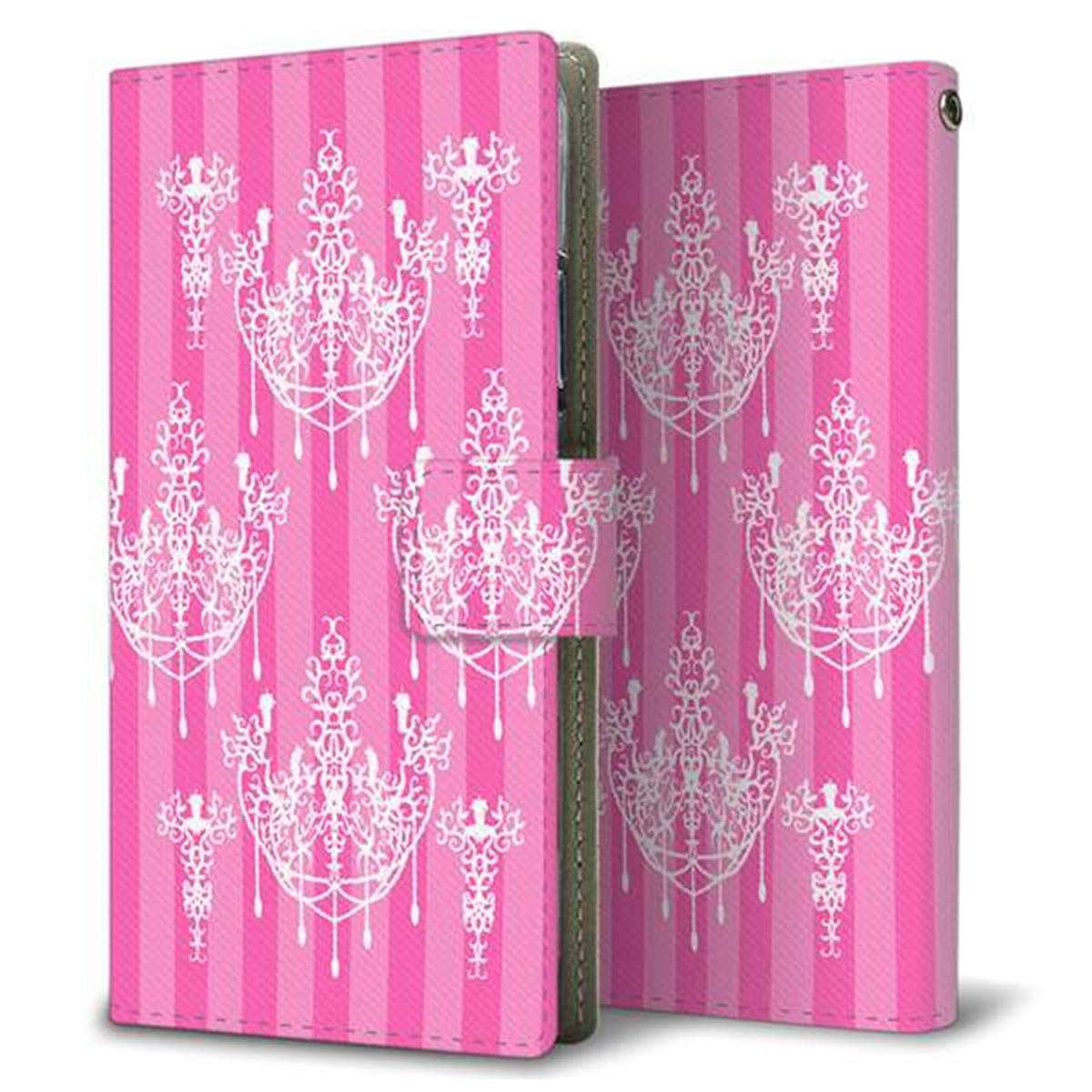 au アクオス セリエ SHV34 画質仕上げ プリント手帳型ケース(薄型スリム)【AG845 シャンデリアストライプ(ピンク)】