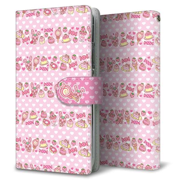 au アクオス セリエ ミニ SHV38 高画質仕上げ プリント手帳型ケース(通常型)【AG862 イチゴウサギ(ラビベリー)のボーダースイーツ ピンク】