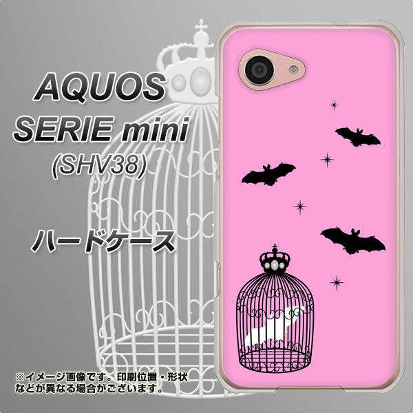 au アクオス セリエ ミニ SHV38 高画質仕上げ 背面印刷 ハードケース【AG808 こうもりの王冠鳥かご(ピンク×黒)】