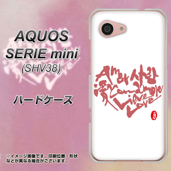 au アクオス セリエ ミニ SHV38 高画質仕上げ 背面印刷 ハードケース【OE801 世界の言葉で「愛(ホワイト)」のデザイン筆文字(書道家作品)】