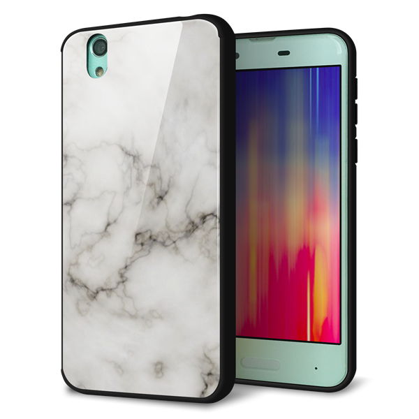 au アクオス センス SHV40 強化ガラス&TPUスマホケース ガラプリ【KM871 大理石WH】