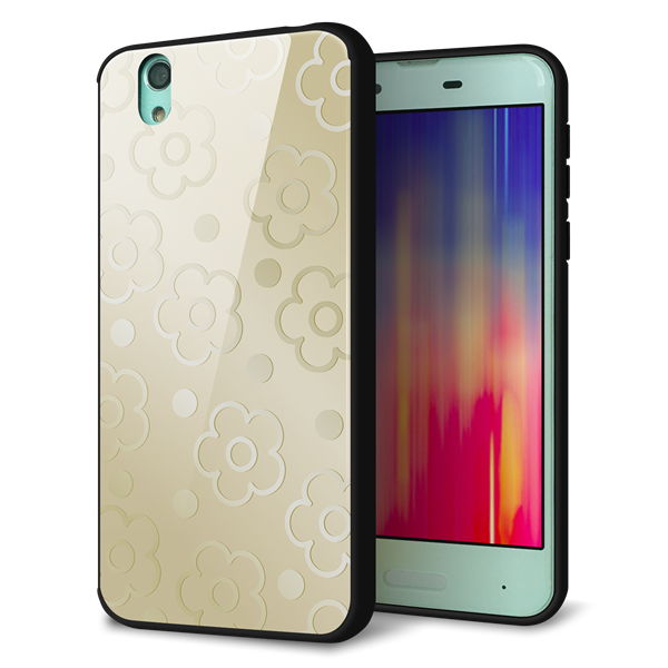 au アクオス センス SHV40 強化ガラス&TPUスマホケース ガラプリ【SC842 エンボス風デイジーシンプル(ベージュ)】