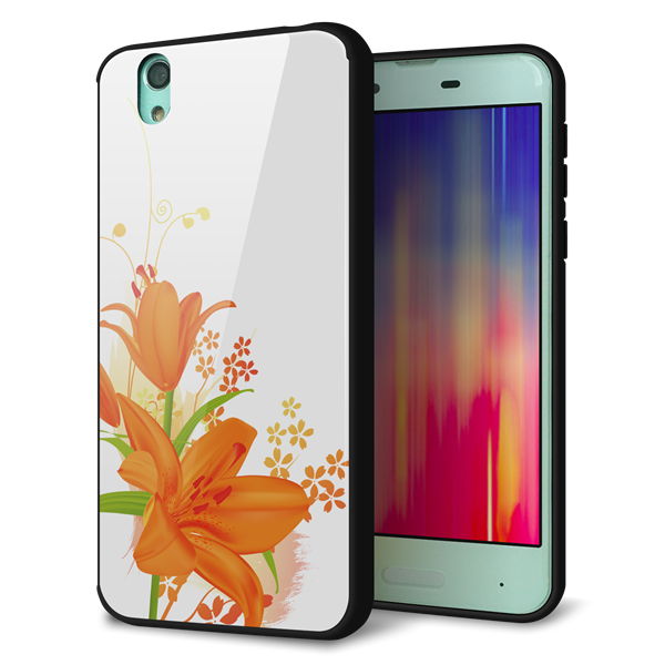 au アクオス センス SHV40 強化ガラス&TPUスマホケース ガラプリ【SC848 ユリ(オレンジ)】