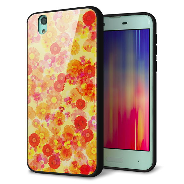 au アクオス センス SHV40 強化ガラス&TPUスマホケース ガラプリ【SC867 リバティプリント フルールドパルファン(イエロー)】