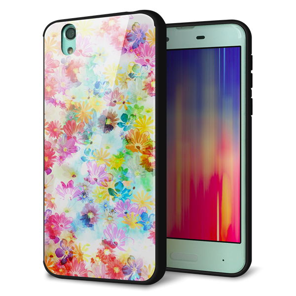au アクオス センス SHV40 強化ガラス&TPUスマホケース ガラプリ【SC876 リバティプリント プレスドフラワー(ホワイト)】