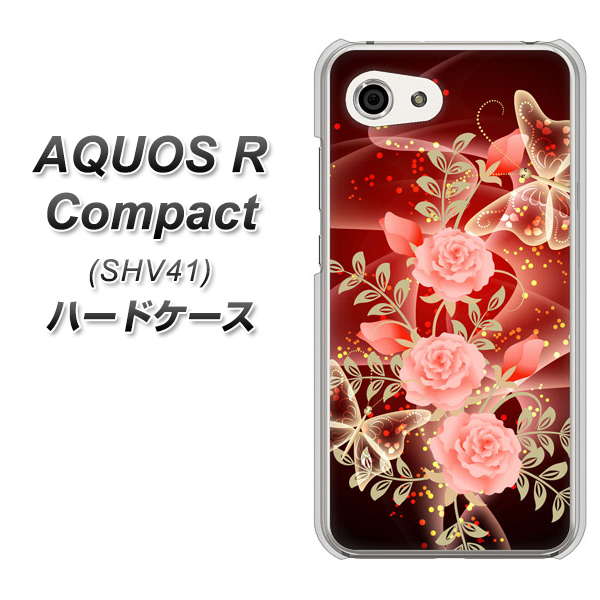 au アクオスR コンパクト SHV41 高画質仕上げ 背面印刷 ハードケース【VA824 魅惑の蝶とピンクのバラ】