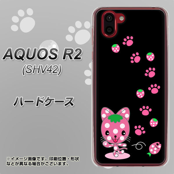 au アクオス R2 SHV42 高画質仕上げ 背面印刷 ハードケース【AG820 イチゴ猫のにゃんベリー(黒)】