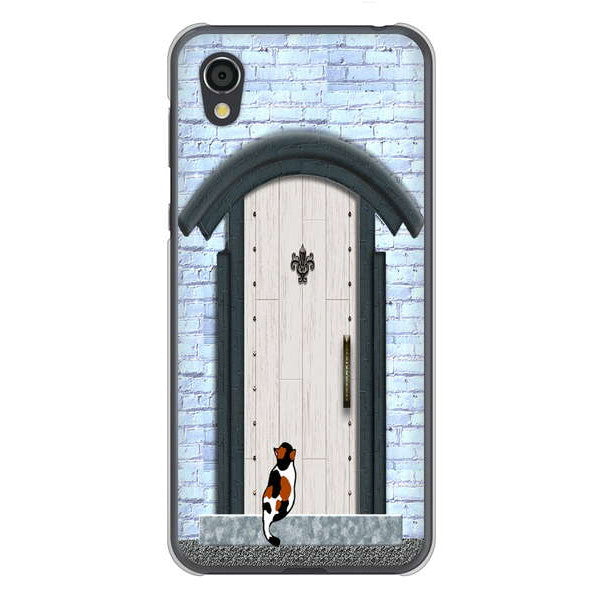 AQUOS sense2 SHV43 au 高画質仕上げ 背面印刷 ハードケース 猫とドア