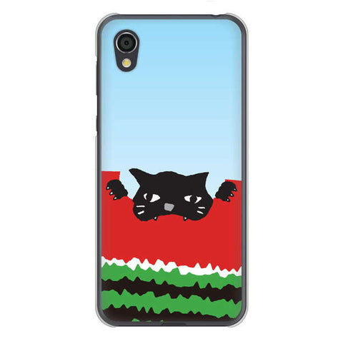 AQUOS sense2 SHV43 au 高画質仕上げ 背面印刷 ハードケース すいかをかじるネコ