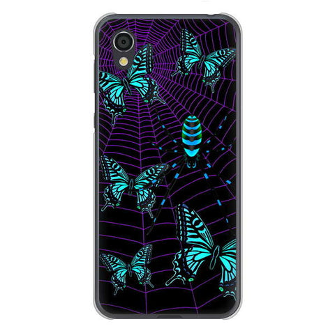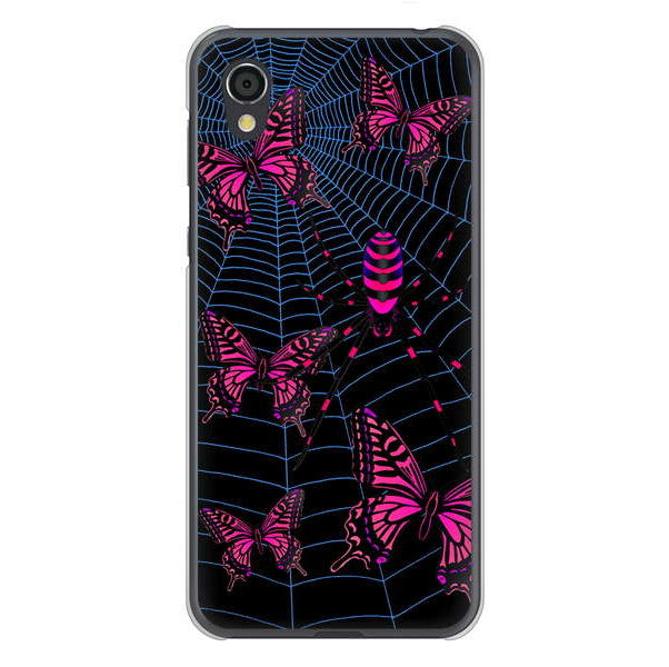 AQUOS sense2 SHV43 au 高画質仕上げ 背面印刷 ハードケース むかいあぐる 蜘蛛の巣に舞う蝶