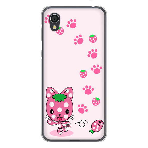 AQUOS sense2 SHV43 au 高画質仕上げ 背面印刷 ハードケース むかいあぐる イチゴ猫のにゃんベリー