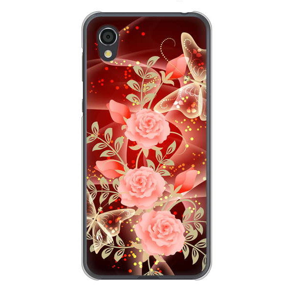 AQUOS sense2 SHV43 au 高画質仕上げ 背面印刷 ハードケース 【VA824 魅惑の蝶とピンクのバラ】