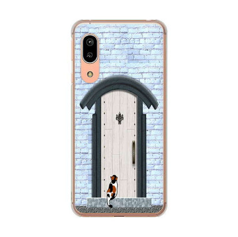AQUOS sense3 SHV45 au 高画質仕上げ 背面印刷 ハードケース 猫とドア