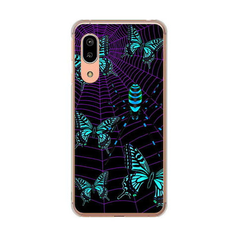 AQUOS sense3 SHV45 au 高画質仕上げ 背面印刷 ハードケース むかいあぐる 蜘蛛の巣に舞う蝶
