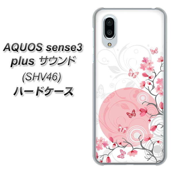 au アクオスセンス3 プラス サウンド SHV46 高画質仕上げ 背面印刷 ハードケース【030 花と蝶(うす桃色)】