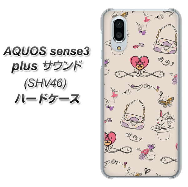 au アクオスセンス3 プラス サウンド SHV46 高画質仕上げ 背面印刷 ハードケース【705 うさぎとバッグ】