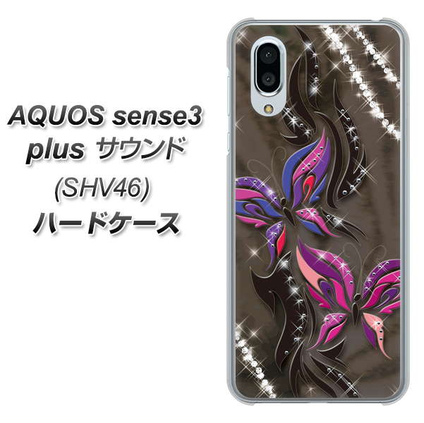 au アクオスセンス3 プラス サウンド SHV46 高画質仕上げ 背面印刷 ハードケース【1164 キラめくストーンと蝶】