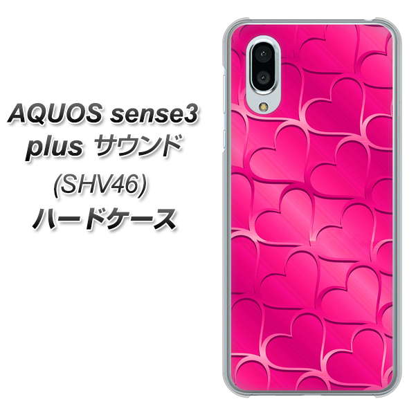 au アクオスセンス3 プラス サウンド SHV46 高画質仕上げ 背面印刷 ハードケース【1347 かくれハート(ショッキングピンク)】
