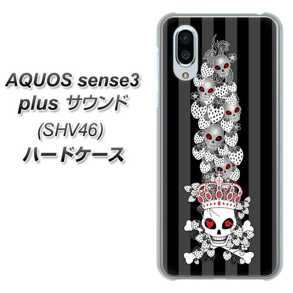 au アクオスセンス3 プラス サウンド SHV46 高画質仕上げ 背面印刷 ハードケース【AG802 苺骸骨王冠蔦(黒)】
