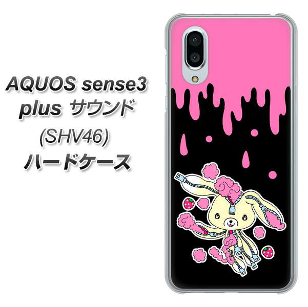 au アクオスセンス3 プラス サウンド SHV46 高画質仕上げ 背面印刷 ハードケース【AG814 ジッパーうさぎのジッピョン(黒×ピンク)】