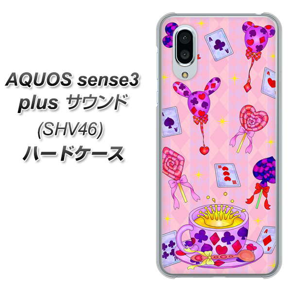 au アクオスセンス3 プラス サウンド SHV46 高画質仕上げ 背面印刷 ハードケース【AG817 トランプティー(ピンク)】
