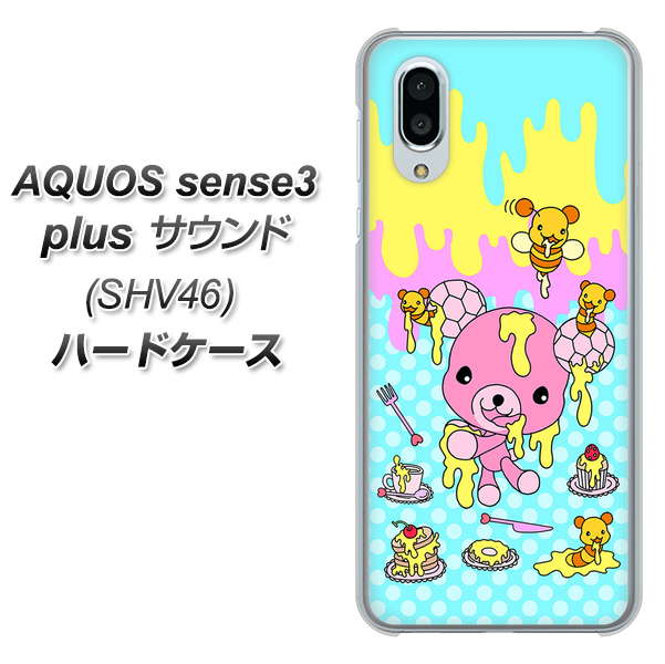 au アクオスセンス3 プラス サウンド SHV46 高画質仕上げ 背面印刷 ハードケース【AG821 ハニベア(水玉水色)】