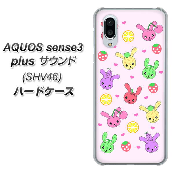 au アクオスセンス3 プラス サウンド SHV46 高画質仕上げ 背面印刷 ハードケース【AG825 フルーツうさぎのブルーラビッツ(ピンク)】