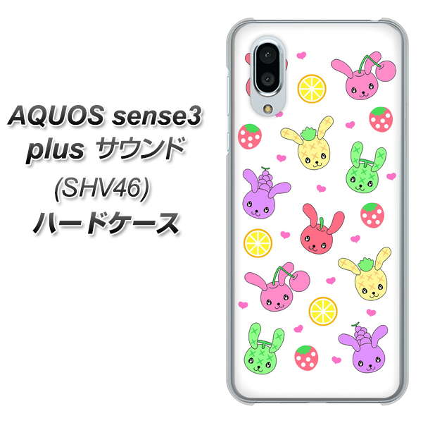 au アクオスセンス3 プラス サウンド SHV46 高画質仕上げ 背面印刷 ハードケース【AG826 フルーツうさぎのブルーラビッツ(白)】