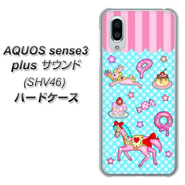 au アクオスセンス3 プラス サウンド SHV46 高画質仕上げ 背面印刷 ハードケース【AG828 メリーゴーランド(水色)】