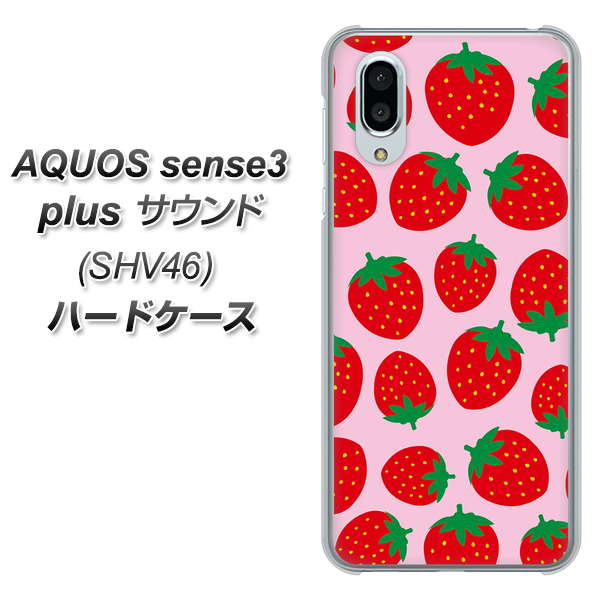 au アクオスセンス3 プラス サウンド SHV46 高画質仕上げ 背面印刷 ハードケース【SC813 小さいイチゴ模様 レッドとピンク】