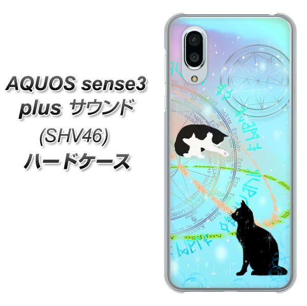 au アクオスセンス3 プラス サウンド SHV46 高画質仕上げ 背面印刷 ハードケース【YJ329 魔法陣猫 キラキラ パステル】