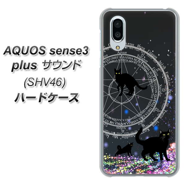 au アクオスセンス3 プラス サウンド SHV46 高画質仕上げ 背面印刷 ハードケース【YJ330 魔法陣猫 キラキラ 黒猫】