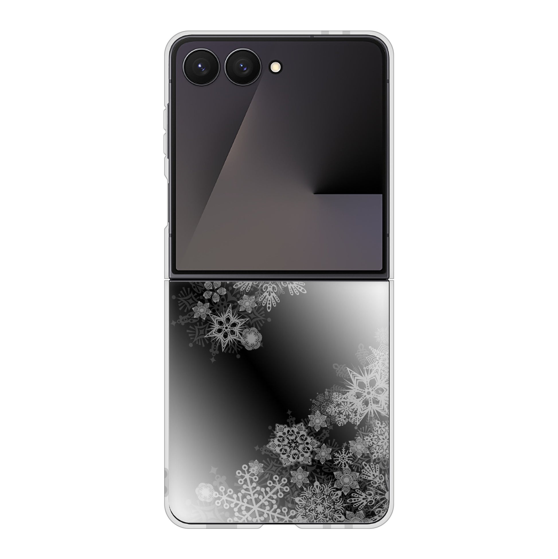Galaxy Z Flip7 SM-F766Z SoftBank 高画質仕上げ 背面印刷 ハードケース 【YJ340 モノトーン 雪の結晶 】